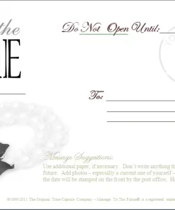 Do you need a lot of Wedding Message To The Future Stationary? This is it! Put more Message To The Future letters into your time capsule for that special day when you as a married couple will celebrate a special anniversary or on the date you have chosen to open the time capsule. Get this extra pack so your extended family and friends can leave inspiring messages of hope, tell funny stories, or make predictions of your future as a married couple.